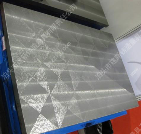 鑄鐵平臺(tái)采用面、邦、筋3個(gè)部分組成,各部分均為一次性澆注而成。通常鑄鐵平臺(tái)高度也是根據(jù)平臺(tái)大小決定的,1500*2000——2000*300...